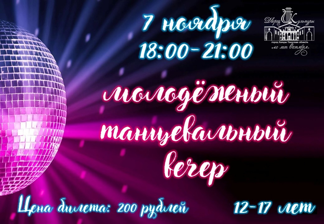 7 НОЯБРЯ 18:00-21:00 в ДК «40 лет Октября» состоится Молодёжный танцевальный вечер.