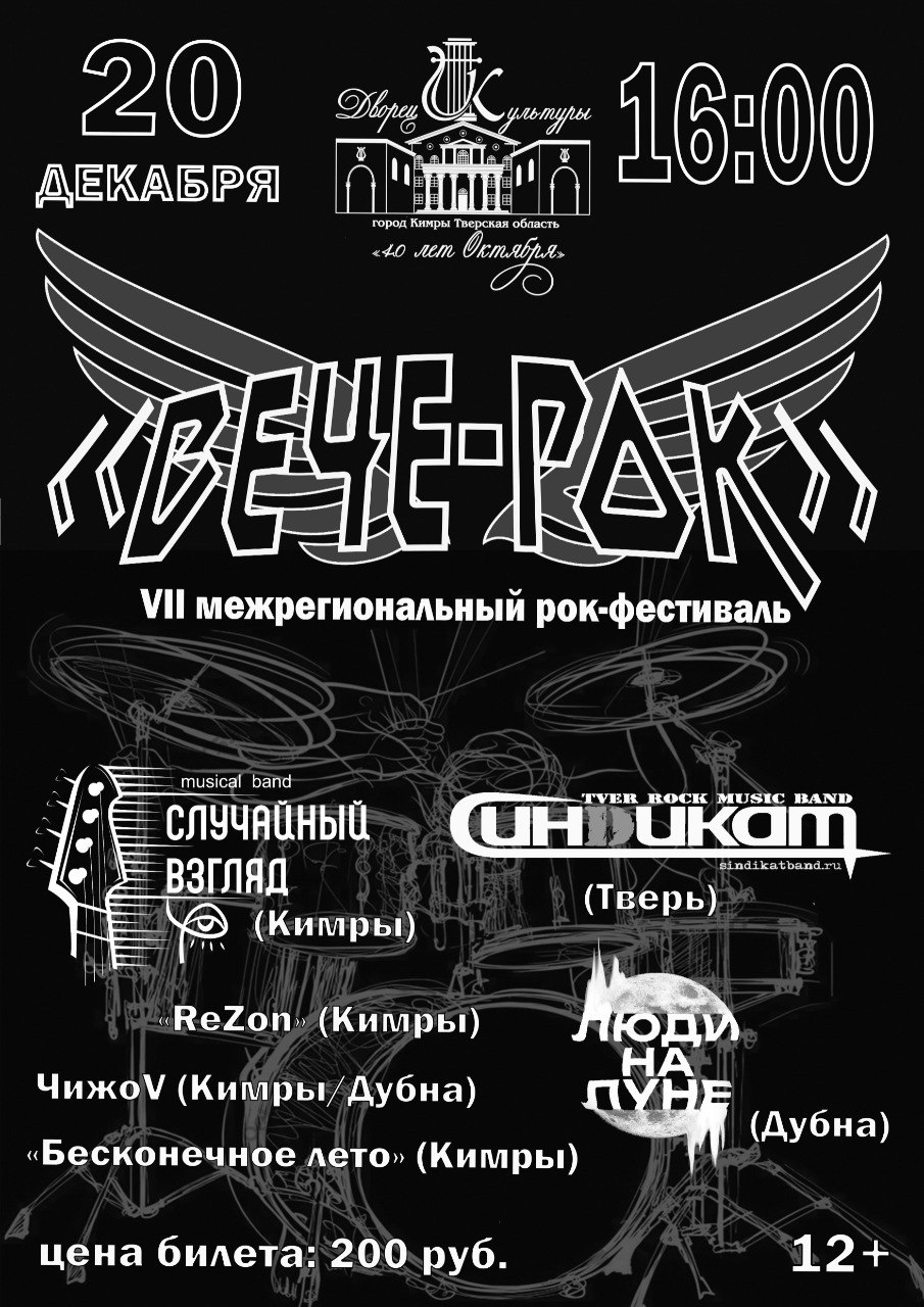 20 декабря в 16:00 на сцене Дворца культуры «40 лет Октября» пройдет VII Межрегиональный рок - фестиваль «ВЕЧЕ-РОК».