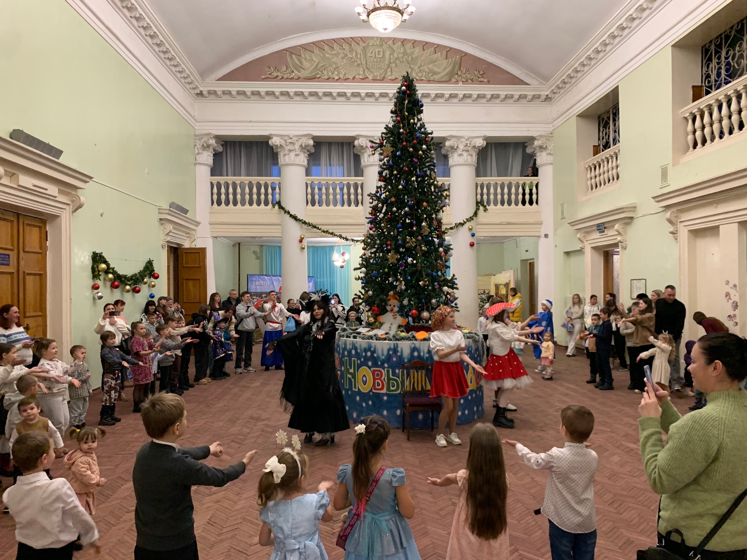Дети смогли насладиться новогодней сказкой «Тайна волшебного эликсира», поиграть и поводить хороводы с главными героями сказки около ёлки, а также получили новогодние подарки.