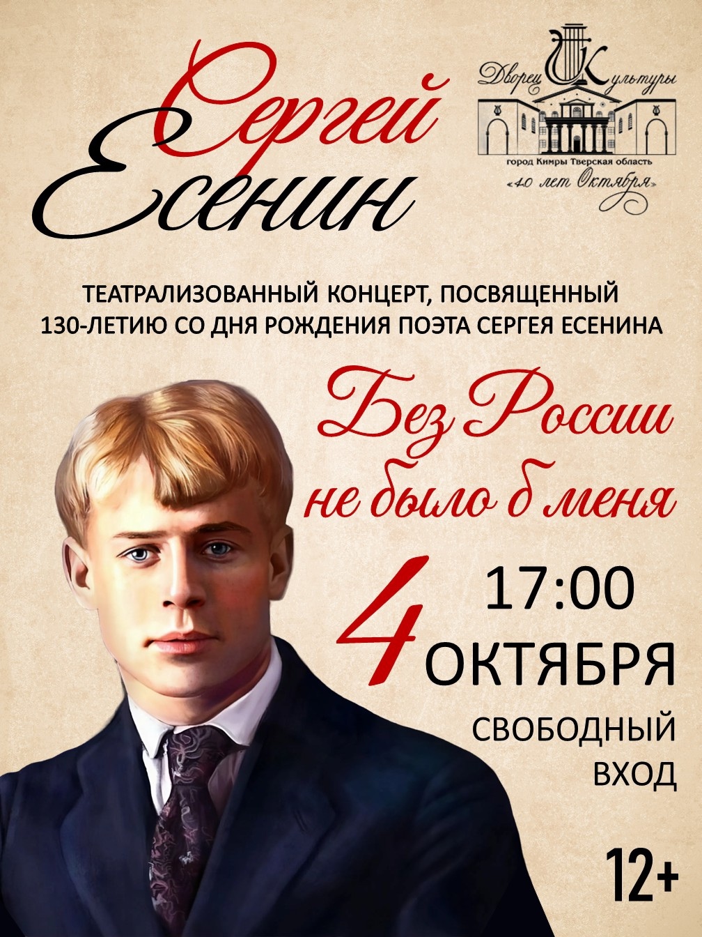Участник коллектива Дворца Культуры «40 лет Октября» - театральной студии «Пилигрим» - Денис Фаллер читает стих С.Есенина в рамках поэтического онлайн марафона, посвященного 130-летию со дня рождения поэта Сергея Есенина.