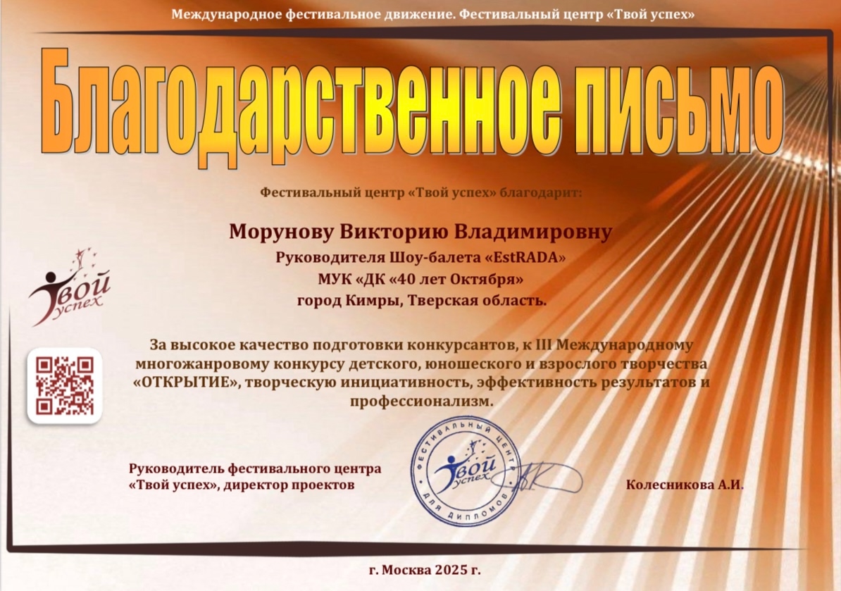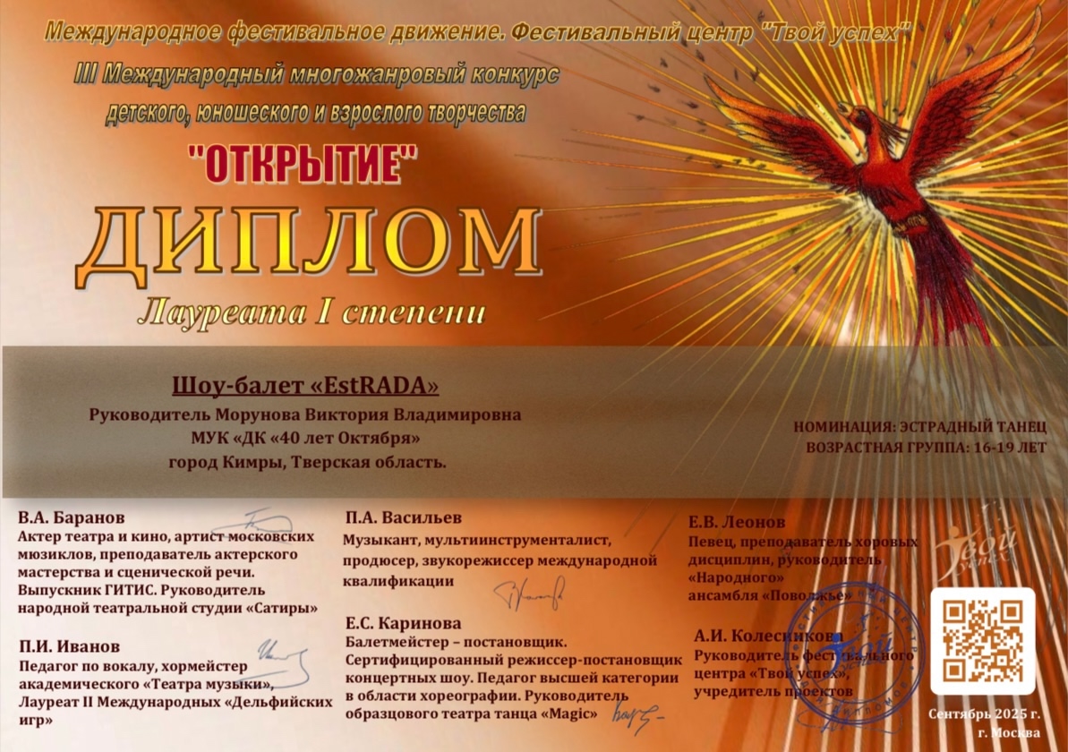 III Международного многожанрового конкурса детского, юношеского и взрослого творчества «ОТКРЫТИЕ», который проходил в сентябре 2025г. по инициативе Фестивального центра «Твой успех» (г.Москва).